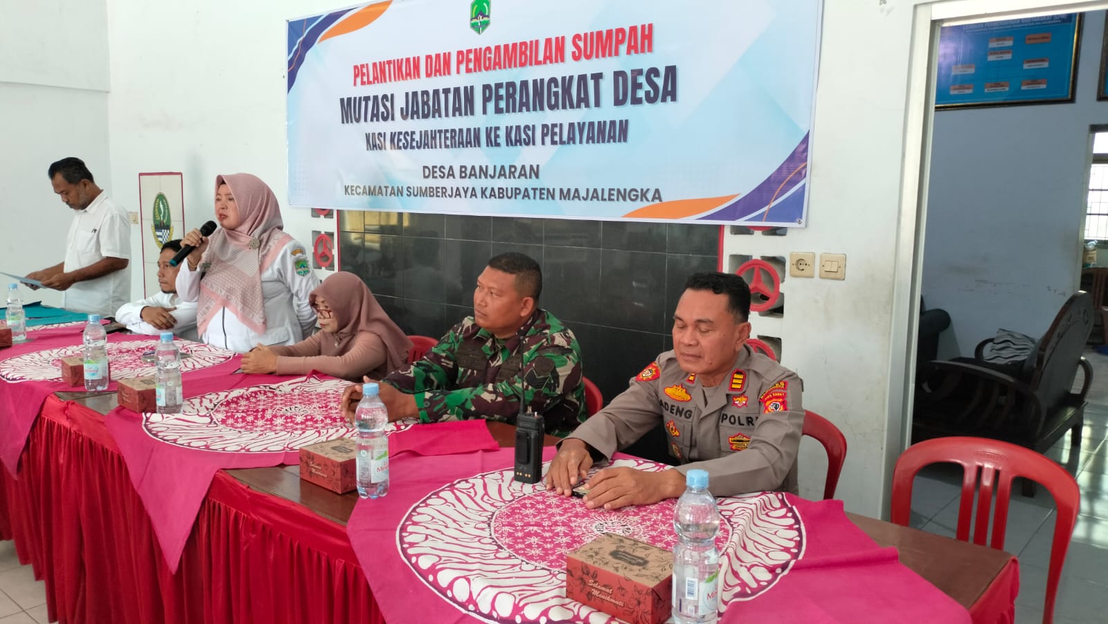 Kapolres Majalengka AKBP Rita Suwadi, S.H., S.I.K., M.M., melalui Kapolsek Sumberjaya AKP Adeng, hadir langsung dalam acara tersebut bersama unsur Muspika Kecamatan Sumberjaya. Pelantikan Sdr. Zaenal Muttaqin sebagai Kasi Pelayanan dipimpin langsung oleh Kepala Desa Banjaran, Sdri. Hj. Susilo Purnawati Agustin.