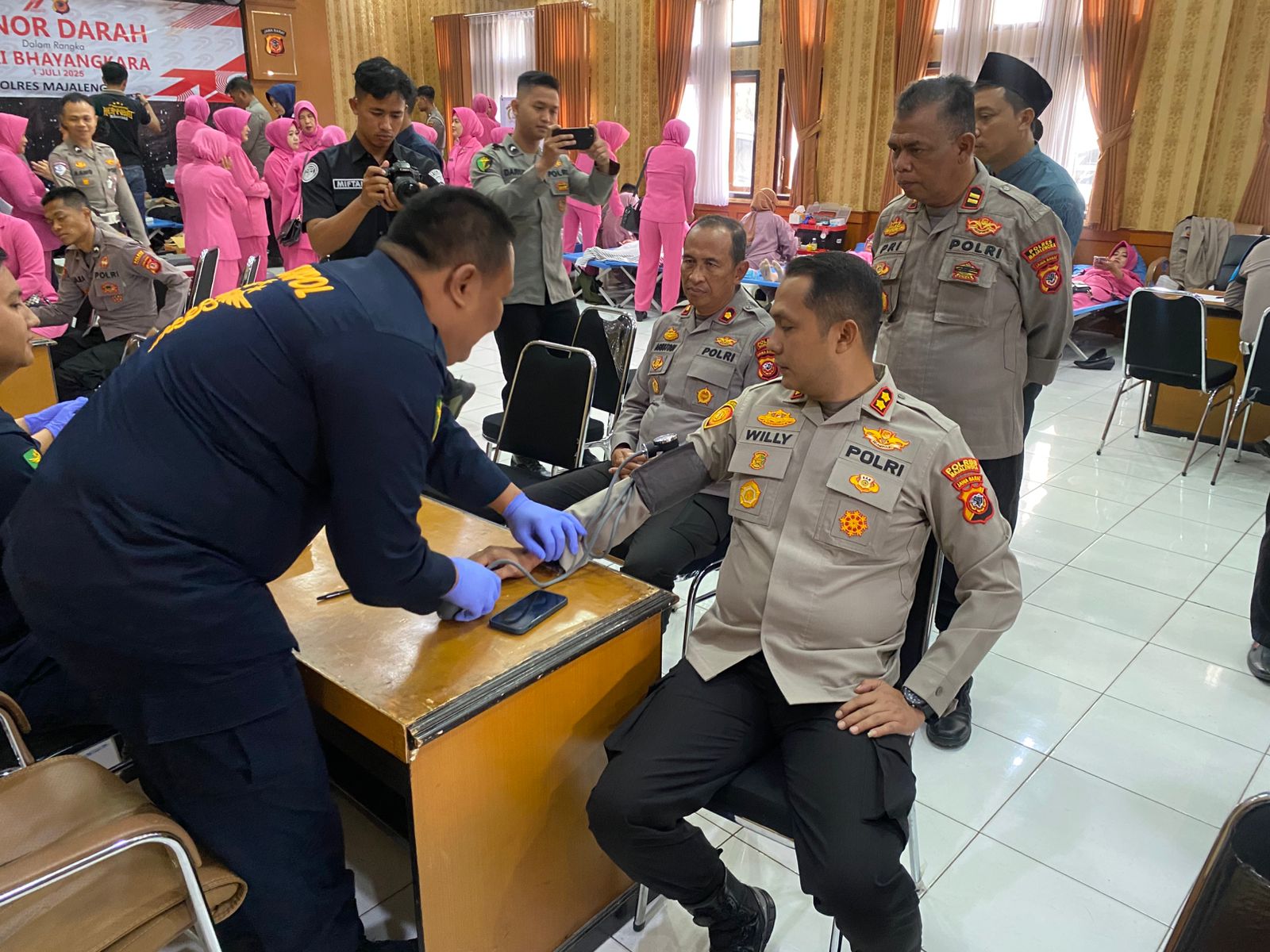 “Jadi ada dua kegiatan sekaligus yakni donor darah, sebagai pelaksana adalah PMI Kabupaten Majalengka, kemudian pemeriksaan kesehatan gratis oleh Klinik Pratama Bhayangkara Polres Majalengka.” Ujarnya.