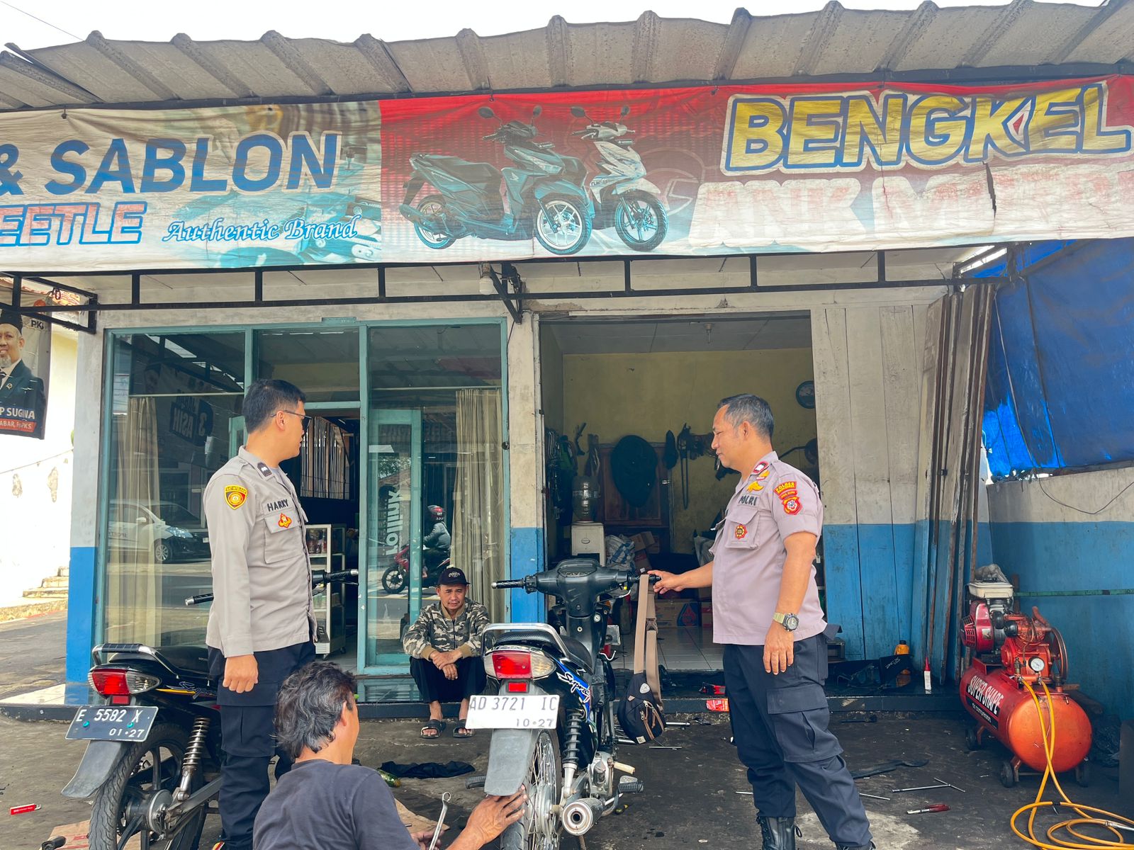 Majalengka, Zonakabar.com – Dalam rangka memantau perkembangan situasi kamtibmas kewilayahan, Polsek Cikijing Polres Majalengka Polda Jabar melalui Ps. Panit Samapta I Aiptu Eman Subagja bersama Bhabinkamtibmas Aipda Harry melakukan patroli dan sambang kewilayahan, seperti terlihat saat sambang ke Bengkel yang berada di Desa Cidulang, kecamatan Cikijing, Kabupaten Majalengka, Kamis (02/04/2026).