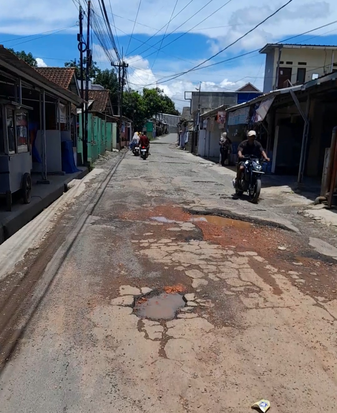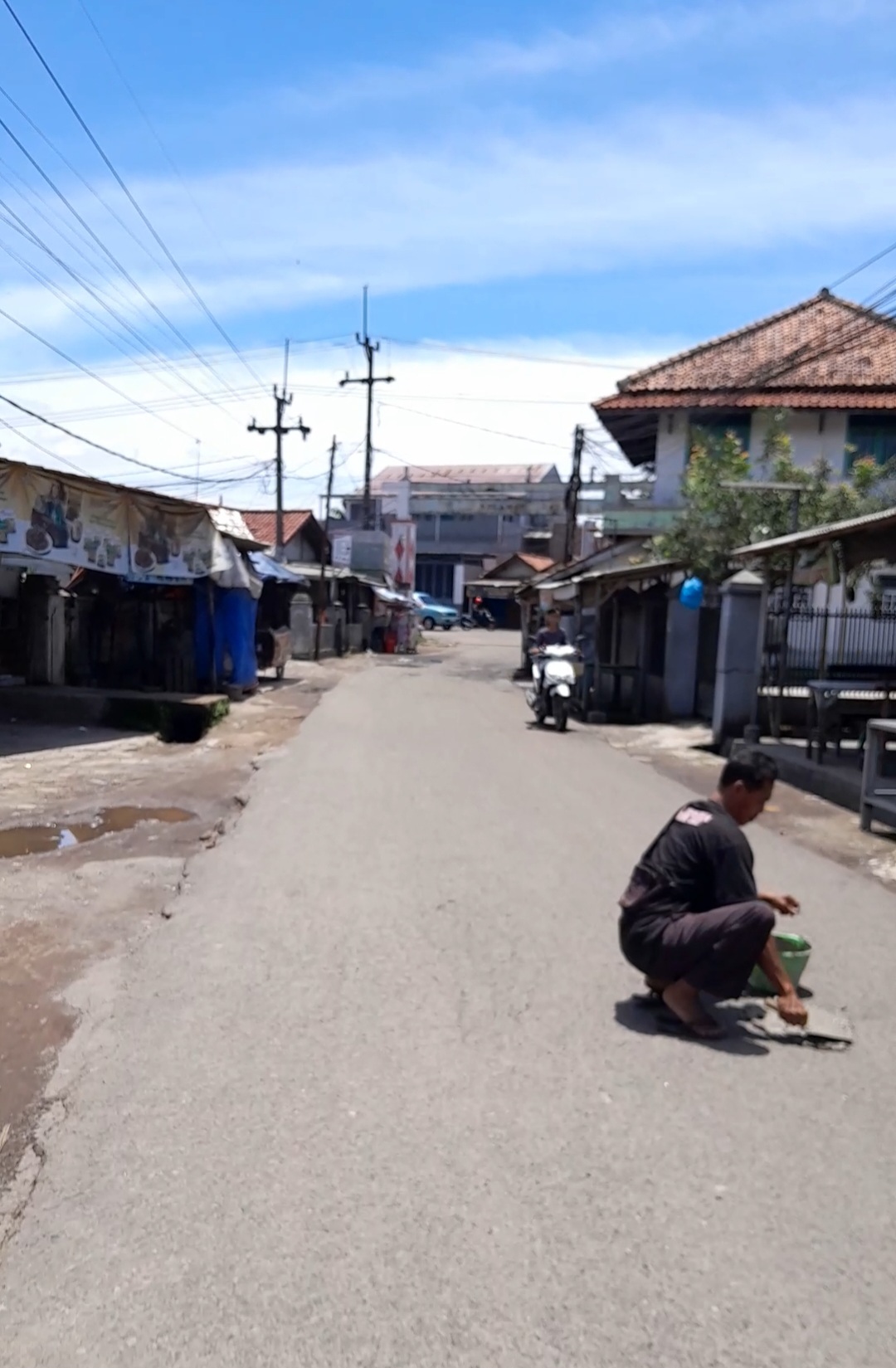 Pemandangan yang cukup mencengangkan terjadi saat awak media zonakabar.com melihat langsung salah satu warga tengah menambal jalan yang berlubang dengan alat seadanya.