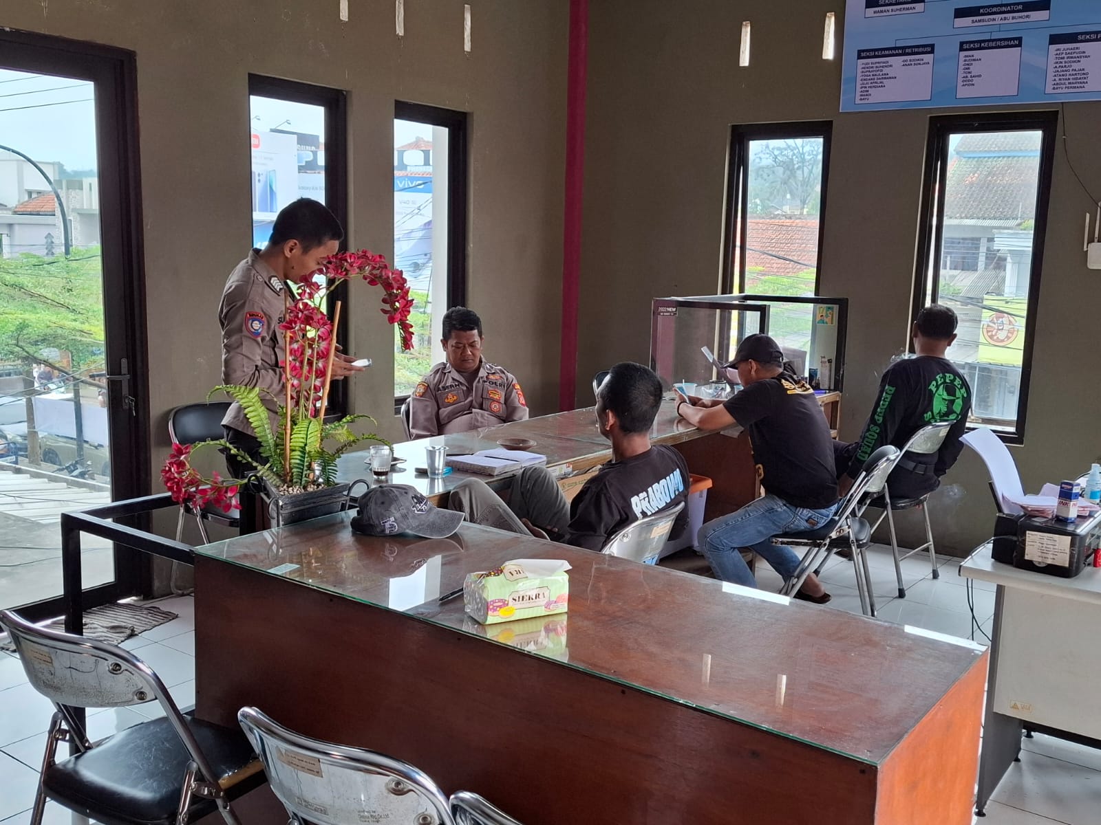 Ka SPKT l Aipda Asep Nugroho dan Bhabinkamtibmas Bripka Achmad Supriyono melaksanakan sambang dialogis dengan memberikan imbauan kamtibmas kepada pengurus Pasar di Kantor Pasar Cikijing, Kecamatan Cikijing, Kabupaten Majalengka, Kamis (04/04/2025).