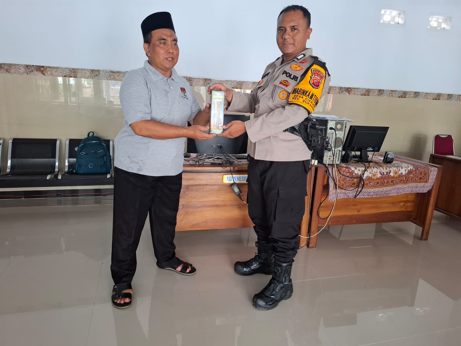 Dalam kegiatan tersebut, Brigadir Bayu tidak hanya menjalin silaturahmi, tetapi juga menyerahkan sarana kontak berupa senter kepada warga. Bantuan ini sebagai bentuk perhatian dan dukungan kepada masyarakat dalam menjaga keamanan lingkungan, khususnya pada malam hari.
