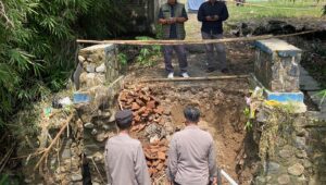 Majalengka // Zonakabar.com – Kapolsek Kadipaten Polres Majalengka Polda Jabar, AKP Budi Wardana, S.Pd., bersama unsur Muspika Kecamatan Kadipaten melaksanakan monitoring dan koordinasi terkait robohnya jembatan penghubung antara Blok Dukuh Domba Desa Liangjulang dan Blok Sawala Desa Kadipaten, pada Selasa (04/11/2025). Kejadian tersebut pertama kali diketahui sekira pukul 05.30 WIB oleh warga setempat dan langsung dilaporkan kepada pihak berwenang.