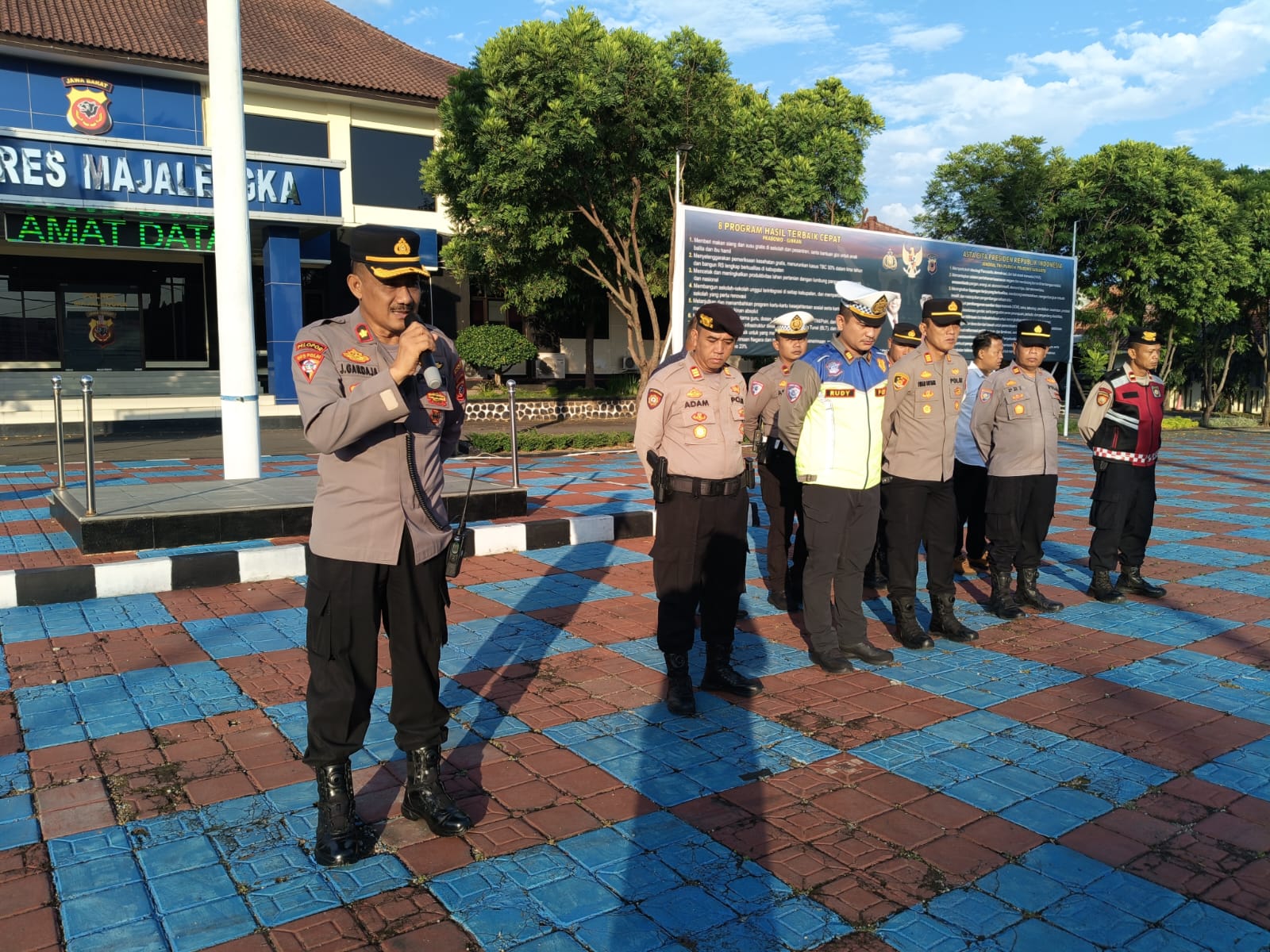 Polres Majalengka terjunkan 73 personil gabungan dari Polres dan Polsek jajaran Polres Majalengka untuk memastikan kelancaran dan keamanan acara Rapat Paripurna DPRD dan Open House Peringatan Hari Jadi Majalengka ke 535 Tahun 2025.