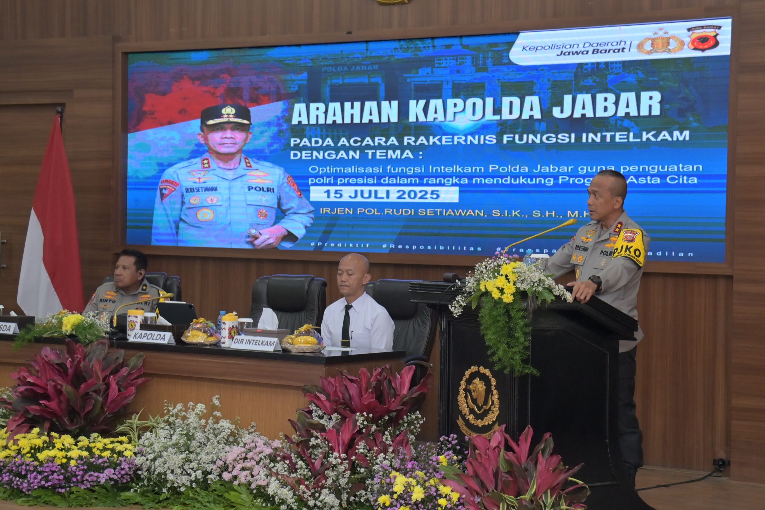 Polda Jabar // zonakabar.com – Kapolda Jawa Barat Irjen Pol. Rudi Setiawan, S.I.K., S.H., M.H. membuka secara resmi kegiatan Rapat Kerja Teknis (Rakernis) Fungsi Intelkam Tahun Anggaran 2025 di Aula Moeryono Polda Jabar, Selasa (15/7/2025) Rakernis tersebut Mengusung tema “Optimalisasi Fungsi Intelkam Polda Jabar Guna Penguatan Polri Presisi dalam Rangka Mendukung Program Asta Cita”, kegiatan ini dihadiri oleh pejabat utama serta jajaran Intelkam Polda Jabar dan Polres jajaran.