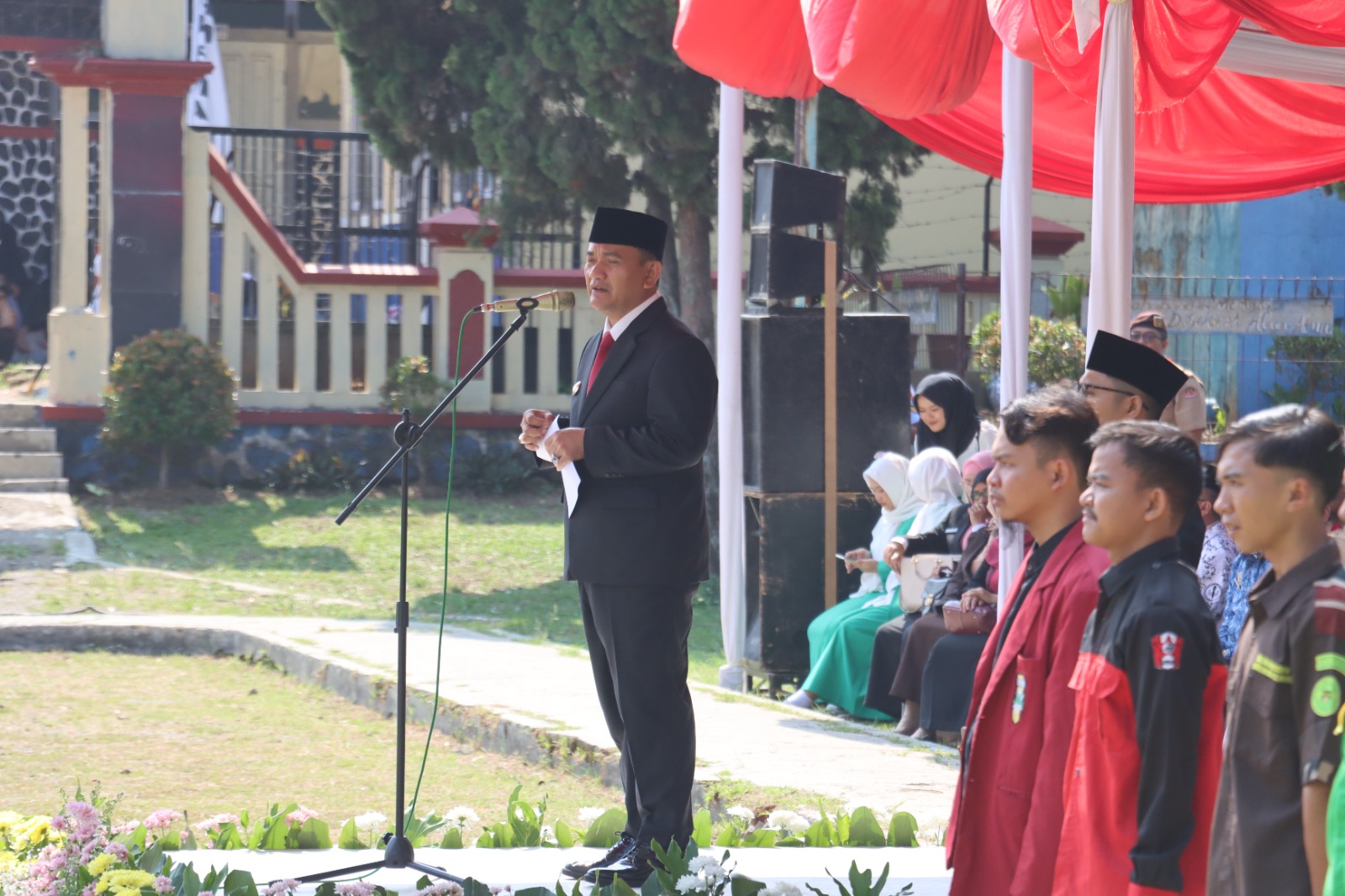 Upacara dihadiri oleh Kapolres Majalengka AKBP Indra Novianto, S.I.K., M.H., M.SI., CPHR didampingi PJU Polres Majalengka, Upacara Peringatan Hari Sumpah Pemuda ke 96 Tahun 2024 Tingkat Kabupaten Majalengka yang dipimpin langsung oleh PJ Bupati Majalengka Dr. H. Dedi Supandi, S.STP., M.Si. dan upacara bertema “Bersama Majukan Indonesia”.