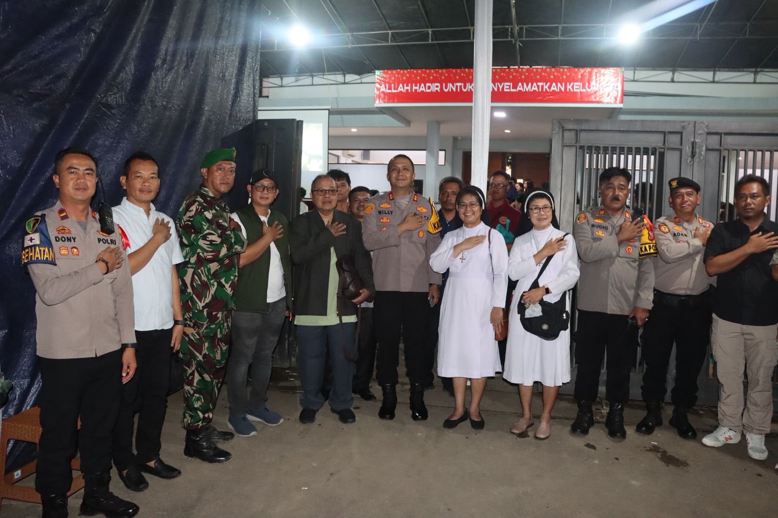 Majalengka // Zonakabar.com – Kapolres Majalengka AKBP Willy Andrian, S.H., S.I.K., M.H. melaksanakan kegiatan monitoring pengamanan gereja dalam rangka pelaksanaan ibadah kebaktian perayaan Natal di wilayah Kabupaten Majalengka guna memastikan situasi kamtibmas tetap aman dan kondusif. Kegiatan monitoring tersebut dilaksanakan pada Rabu malam di Gereja Katolik Kristus Bangkit (GKKB) yang berlokasi di Jalan Raya Ampera, Desa Kadipaten, Kecamatan Kadipaten, dengan tujuan memberikan rasa aman dan nyaman bagi umat Kristiani yang sedang melaksanakan ibadah Natal, Rabu Malam (24/12/2025).
