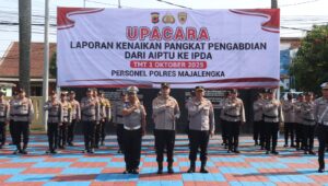 Upacara yang berlangsung khidmat ini diikuti oleh para pejabat utama Polres, perwira, bintara, serta ASN Polri, Personil Polri Polres Majalengka yang mendapatkan penghargaan kenaikan pangkat pengabdian dari Aiptu ke Ipda yaitu Ipda Sugeng Personil Satlantas Polres Majalengka.