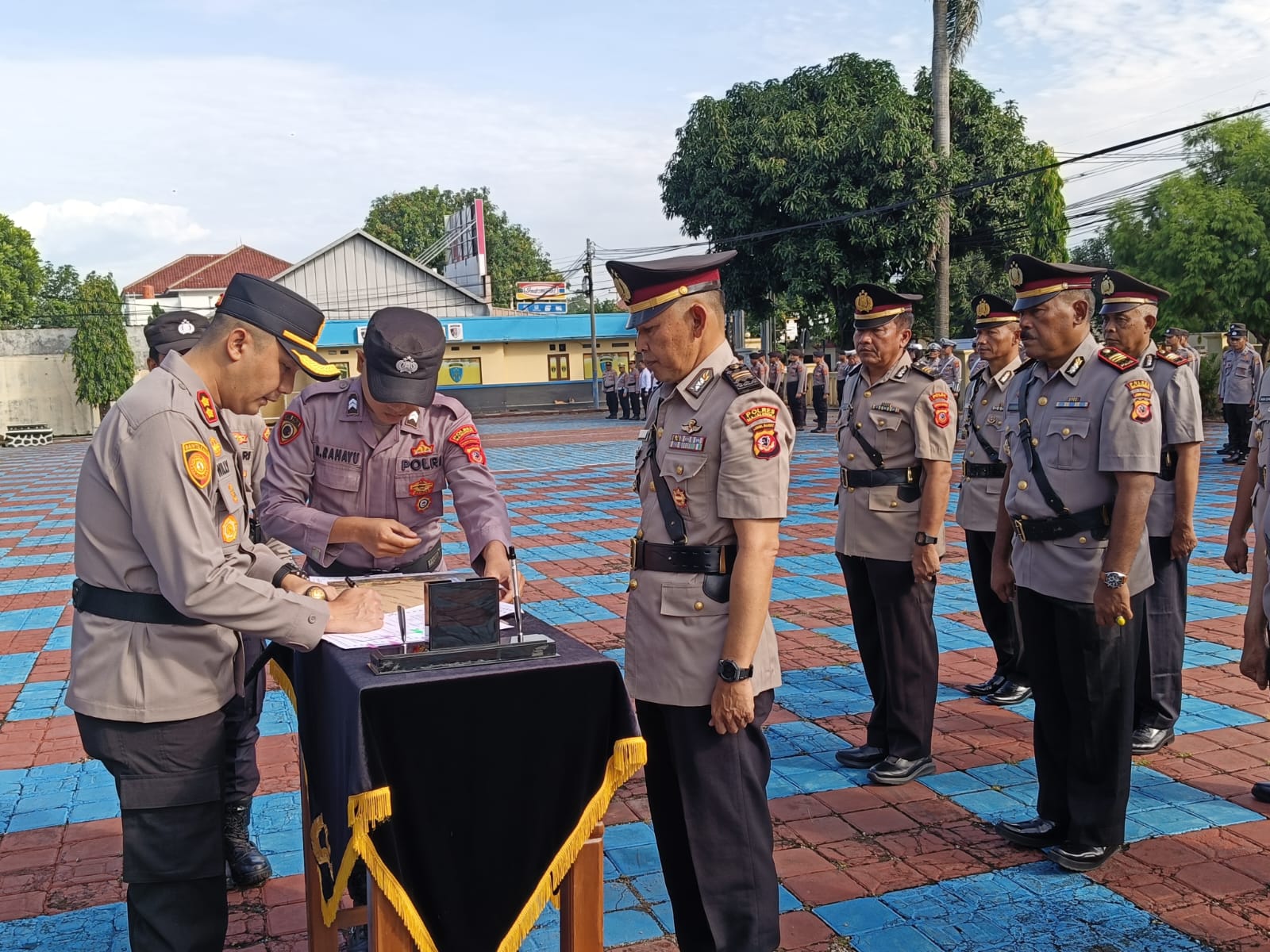 Upacara sertijab ini ditandai dengan pengambilan sumpah serta penandatanganan berita acara dan pakta integritas, setelah itu dilanjutkan dengan Poto bersama pemberian ucapan selamat kepada pejabat lama dan baru diawali oleh Kapolres diikuti pleh pejabat utama, Para Kapolsek serta personel Polres Majalengka.
