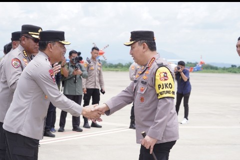 MAJALENGKA, Zonakabar.com – Kapolres Majalengka, AKBP Indra Novianto bersama Waka Polda Jabar, Brigjen Pol Kasihan Rahmadi sambut kedatangan Kapolri, Jenderal Polisi Listyo Sigit Prabowo di BIJB Kertajati, Minggu (6/4/2025).