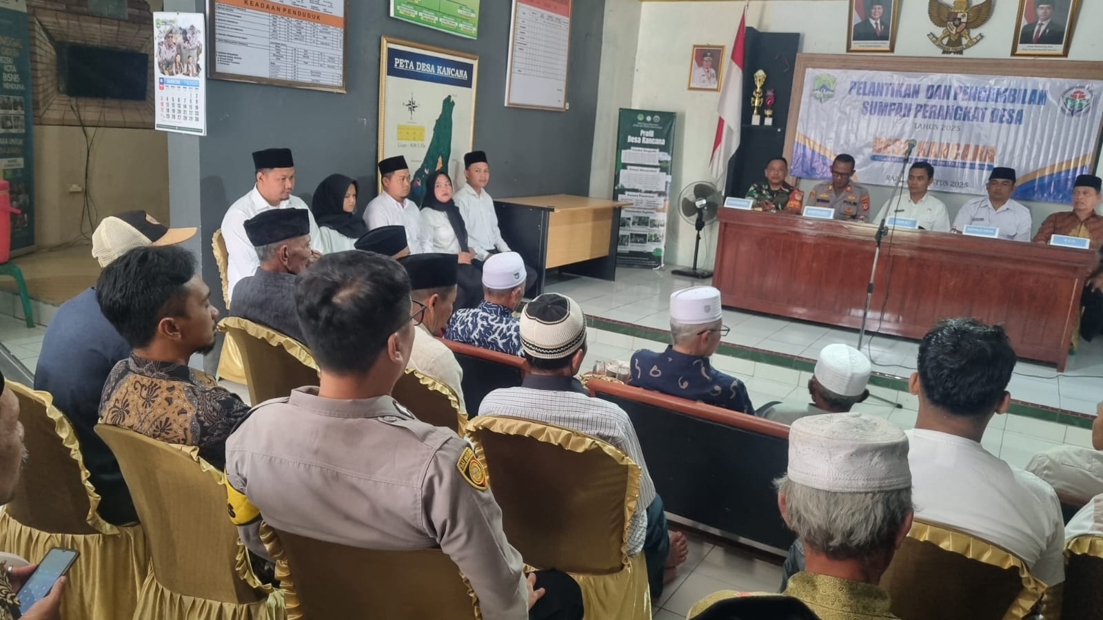 Majalengka // Zonakabar.com – Kapolsek Cikijing, Polres Majalengka, Polda Jabar, AKP Asep Rusmawan, S.H. turut hadir dalam kegiatan pelantikan dan pengambilan sumpah jabatan Perangkat Desa Kancana, Kamis (14/08/2025).
