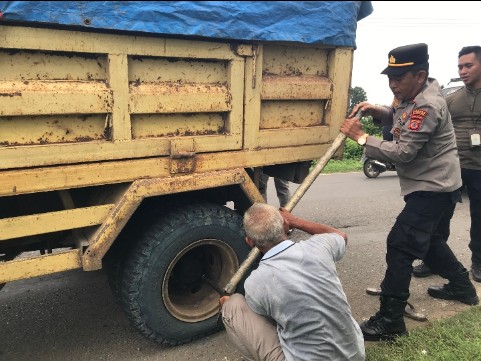 Di saat itulah, AKP Yayat yang tengah berpatroli melintas di lokasi. Melihat kondisi truk berhenti di pinggir jalan, ia langsung menghampiri.