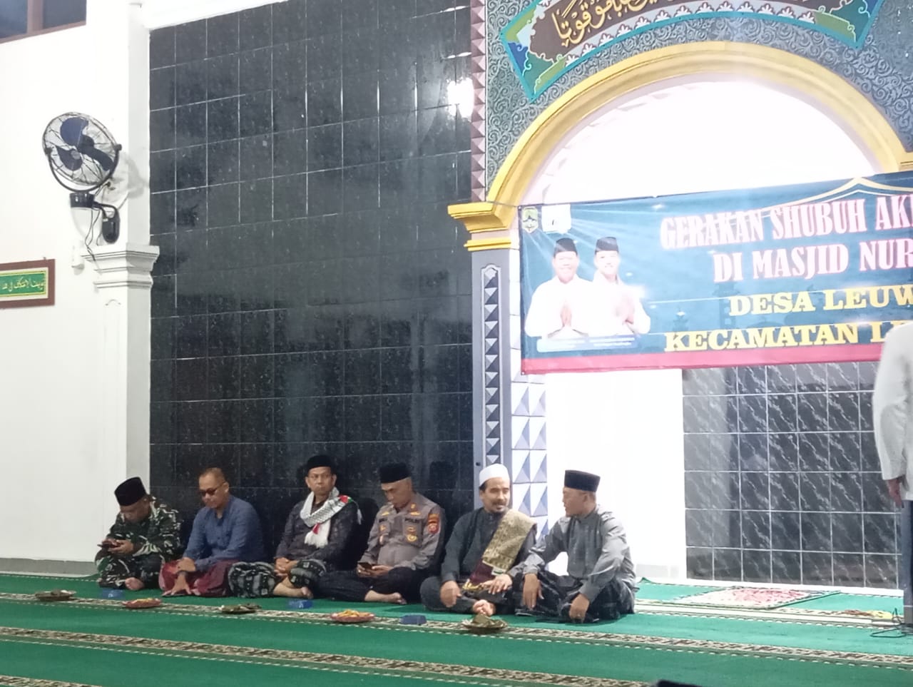 Bertempat di Mesjid Jami Nurul Qirom Desa Leuwikujang Kecamatan Leuwimunding, tampak Sholat Subuh kali ini, Kapolsek Leuwimunding AKP Kenedy Joko Lelono, Kanit Binmas Polsek Aipda Nana Suherna bersama unsur Porkopimcam, Kepala UPT Puskesmas, perangkat desa dan warga masyarakat setempat. Sabtu (24/8/2025).