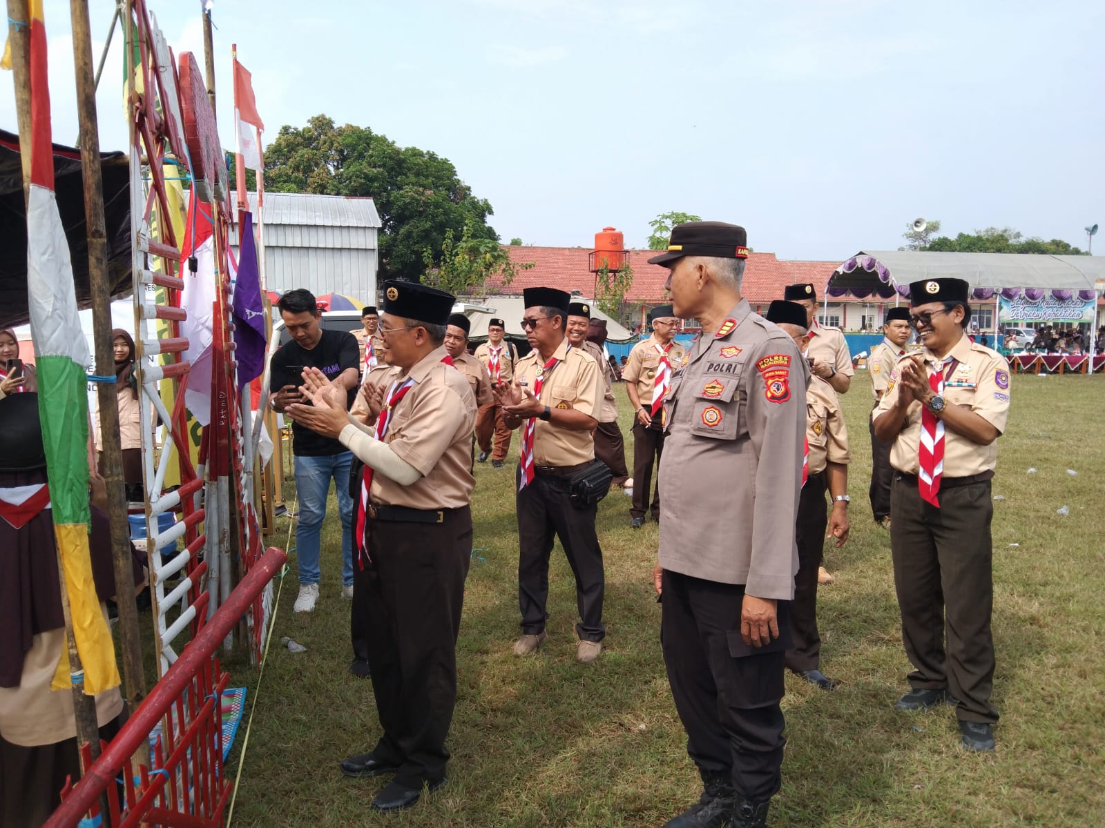Majalengka // Zonakabar.com – Kapolsek Leuwimunding AKP Kenedy Joko Lelono bersama Kanit Intelkam Ailtu Jumaedi dan Kanit Binmas Aipda Nana Suherna menghadiri upacara pembukaan Jambore Ranting Kwartir Ranting (Kwaran) Leuwimunding Tahun 2025, yang berlangsung di Lapangan Sepak Bola Desa Ciparay, Kecamatan Leuwimunding, Kabupaten Majalengka, pada Jumat (8/8/2025).