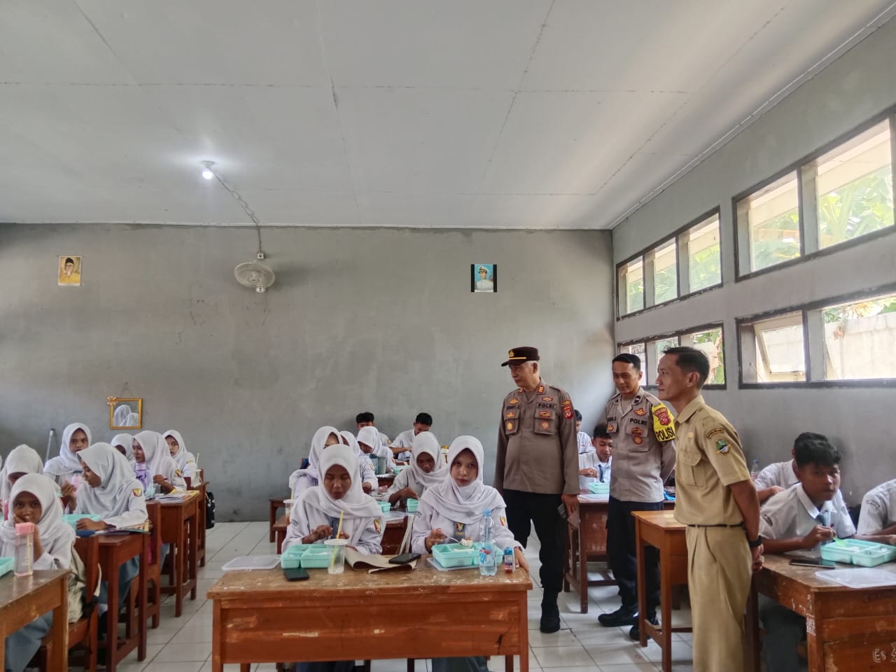 Majalengka Zonakabar.com – Kapolsek Leuwimunding AKP Kenedy Joko Lelono bersama Kanit Binmas Aipda Nana Suherna melaksanakan kegiatan monitoring pembagian Makan Gratis Bergizi (MBG) dari dapur MBG Desa Leuwikujang kepada para siswa di SMA Negeri 1 Leuwimunding, Kecamatan Leuwimunding, Senin (21/07/2025).