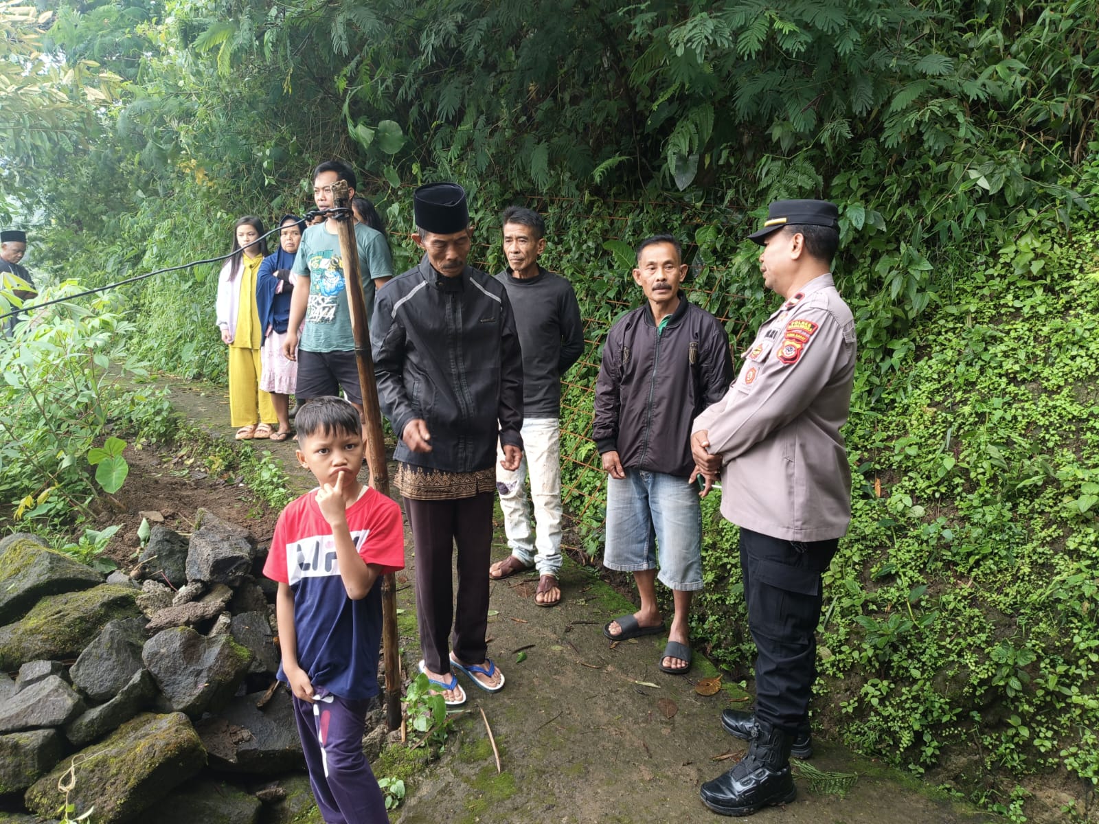Majalengka // Zonakabar.com Kapolsek Malausma Polres Majalengka IPDA Riyana beserta anggota melakukan pengecekan ke sejumlah lokasi yang sering terdampak tanah longsor di Blok Cipeteuy RT 02/03 Desa Ciranca Kecamatan Malausma Kabupaten Majalengka, Sabtu (24/1/2026).