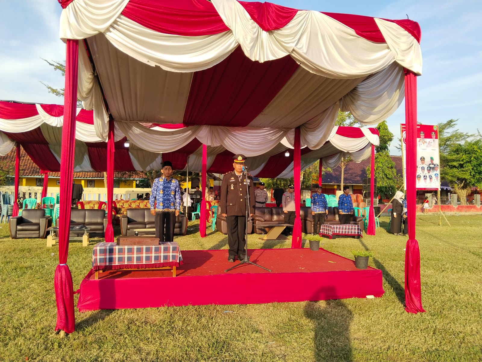 Upacara yang berlangsung di Lapangan Sepak Bola Blok Ahad, Desa Mandapa, Kecamatan Dawuan, ini dipimpin langsung oleh Kasat Binmas Polres Majalengka, Iptu Supriyadi, S.H. sebagai inspektur upacara.(19/25)
