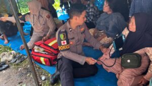Pelayanan kesehatan dipimpin oleh Kasidokkes Polresta Bandung AKP R.A. Azis, S.Pd.I, bersama tenaga medis Aipda Jajat, Amk., Aipda Roni H.S., Amk. dan Aipda Fauzy A., Amk. Tim melakukan pemeriksaan kesehatan langsung di area pengungsian.
