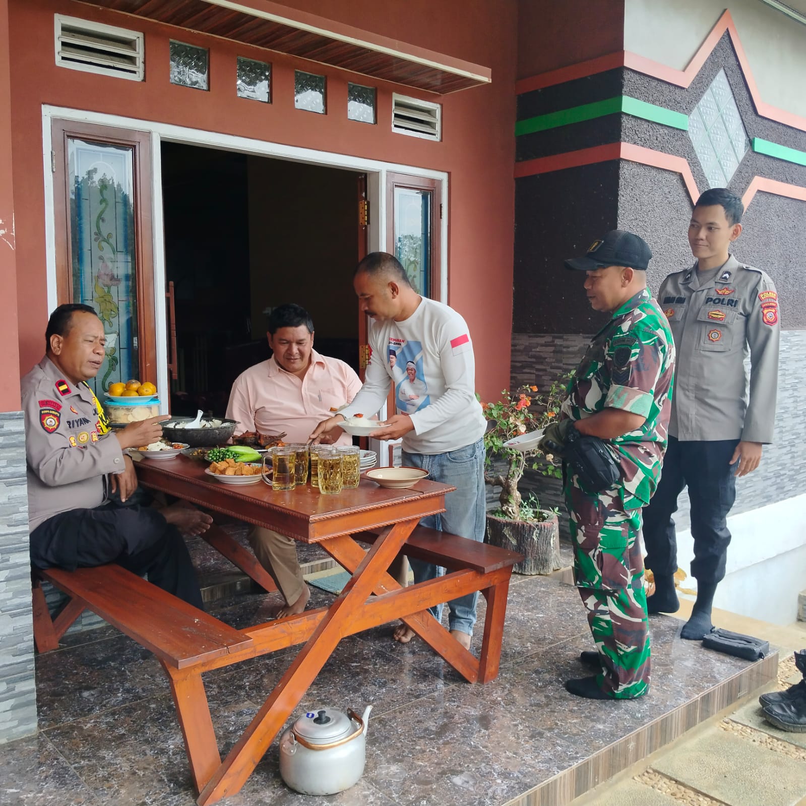 Dalam suasana yang penuh keakraban, Kapolsek Malausma bersama dengan tokoh tokoh masyarakat setempat menikmati hidangan bersama sambil berbincang-bincang santai.