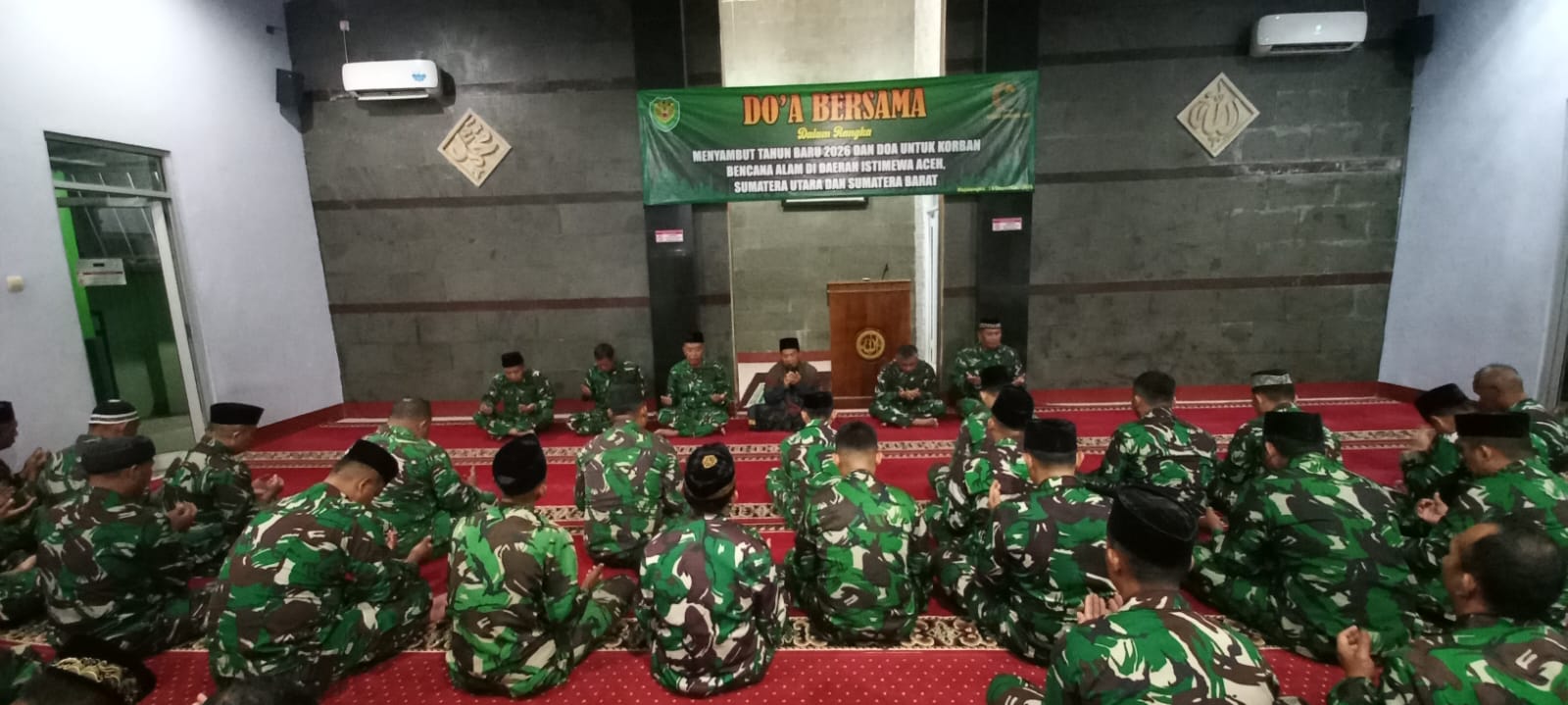 Majalengka // Zonakabar.com – Kodim 0617/Majalengka menggelar doa bersama dalam rangka menyambut Tahun Baru 2026 sekaligus mendoakan keselamatan para korban bencana alam di wilayah Sumatera. Kegiatan tersebut dilaksanakan pada Rabu (31/12/2025) bertempat di Masjid Al-Ikhlas Makodim 0617/Majalengka, Jalan KH Abdul Halim No. 403, Kelurahan Tonjong, Kecamatan Majalengka.