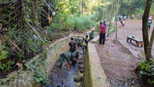 Kegiatan berlangsung dengan semangat gotong royong, di mana TNI, pemerintah desa, dan warga turun langsung membersihkan sampah, rumput liar, serta sedimentasi yang menghambat aliran air.