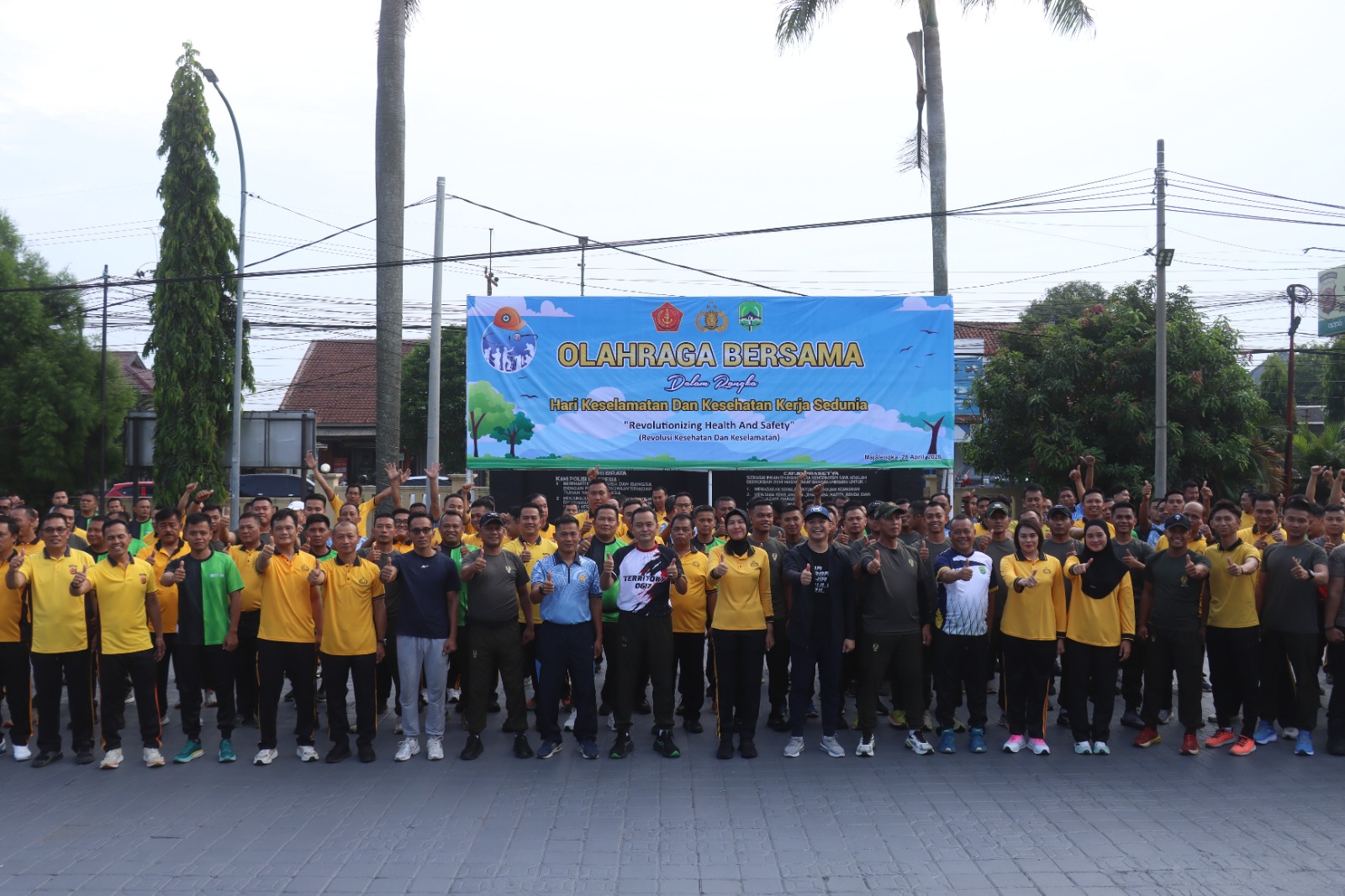 Majalengka, // Zonakabar.com – Dalam rangka memperingati Hari Keselamatan & Kesehatan Kerja (K3) Sedunia yang jatuh pada 28 April 2026, para aparat TNI-Polri serta jajaran pemerintah Kabupaten Majalengka menggelar olahraga bersama di Lapangan Apel Polres Majalengka, Jalan KH Abdul Halim No. 518, Kelurahan Cigasong, Kecamatan Cigasong, Kabupaten Majalengka, Selasa (28/4/2026).