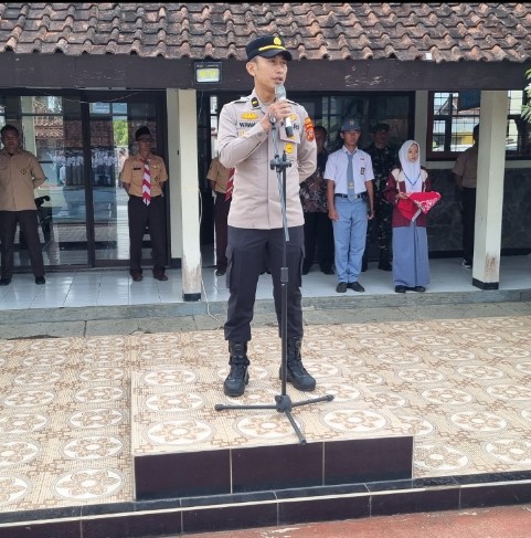 IPDA Wawan turut hadir dalam pelaksanaan upacara bendera sekaligus membuka secara resmi kegiatan MPLS di sekolah tersebut.