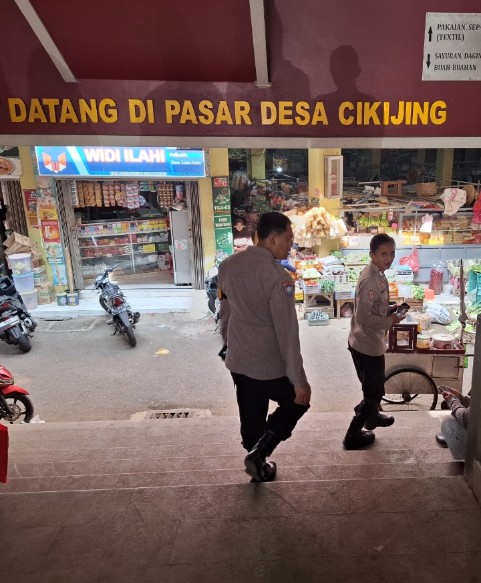 Majalengka, Zonakabar.com – Bhabinkamtibmas Polsek Cikijing Polres Majalengka Polda Jabar Bripka Achmad Supriyono dan Bripka Dede Arif melaksanakan patroli serta menyapa para pedagang dan pengunjung Pasar Cikijing, Senin (16/06/2025).