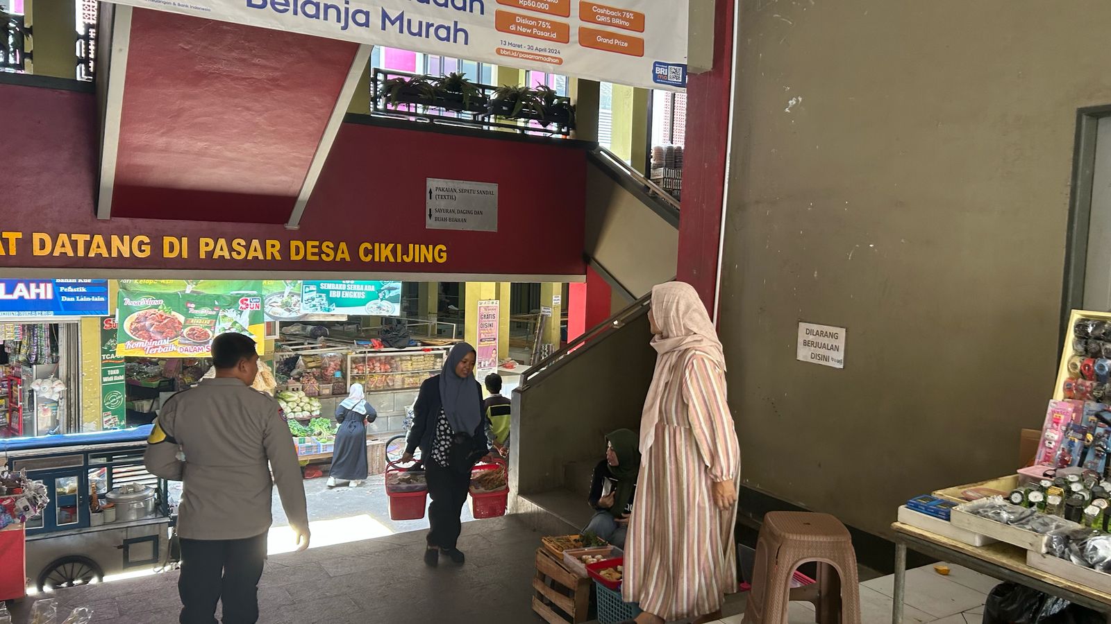 Majalengka, Zonakaba.com – Personil Polsek Cikijing, Polres Majalengka, Polda Jabar, terus berupaya menjaga kondusifitas wilayah dengan mendekatkan diri kepada masyarakat. Kali ini Bhabinkamtibmas Bripka Dede Arif melaksanakan patroli dialogis sambil memberikan imbauan kamtibmas kepada warga yang berada di Area Pasar Cikijing, Kecamatan Cikijing, Kabupaten Majalengka, Sabtu (22/02/2025).
