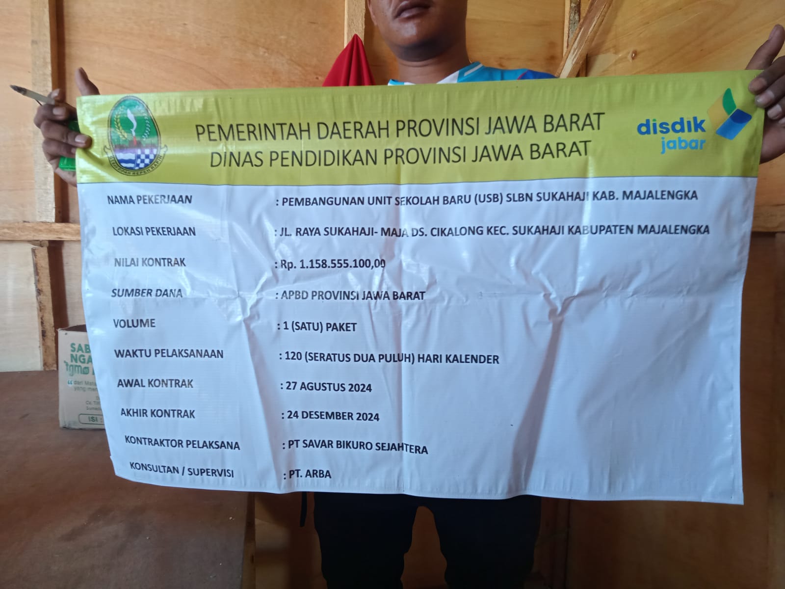 Pemerintah daerah provinsi Jawa Barat melalui dinas pendidikan provinsi Jawa Barat, menggelontorkan dana untuk anggaran pembangunan Unit Sekolah Baru (USB). Jum’at 25 Oktober 2024.