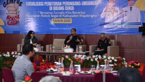 Untuk itu Dinas Komunikasi dan Informatika (Diskominfo) Majalengka menggelar kegiatan sosialisasi Ketentuan dan perundang – undangan di Bidang Cukai Pemberantasan Rokok Ilegal dengan menghadirkan 50 orang Insan Pers. Kegiatan yang berlangsung selama satu hari menghadirkan narasumber Sekertaris Daerah (Sekda) Majalengka, Aeron Randi dan dari Bea Cukai Cirebon, Selasa (26/08/2025), di Hotel Garden Majalengka.