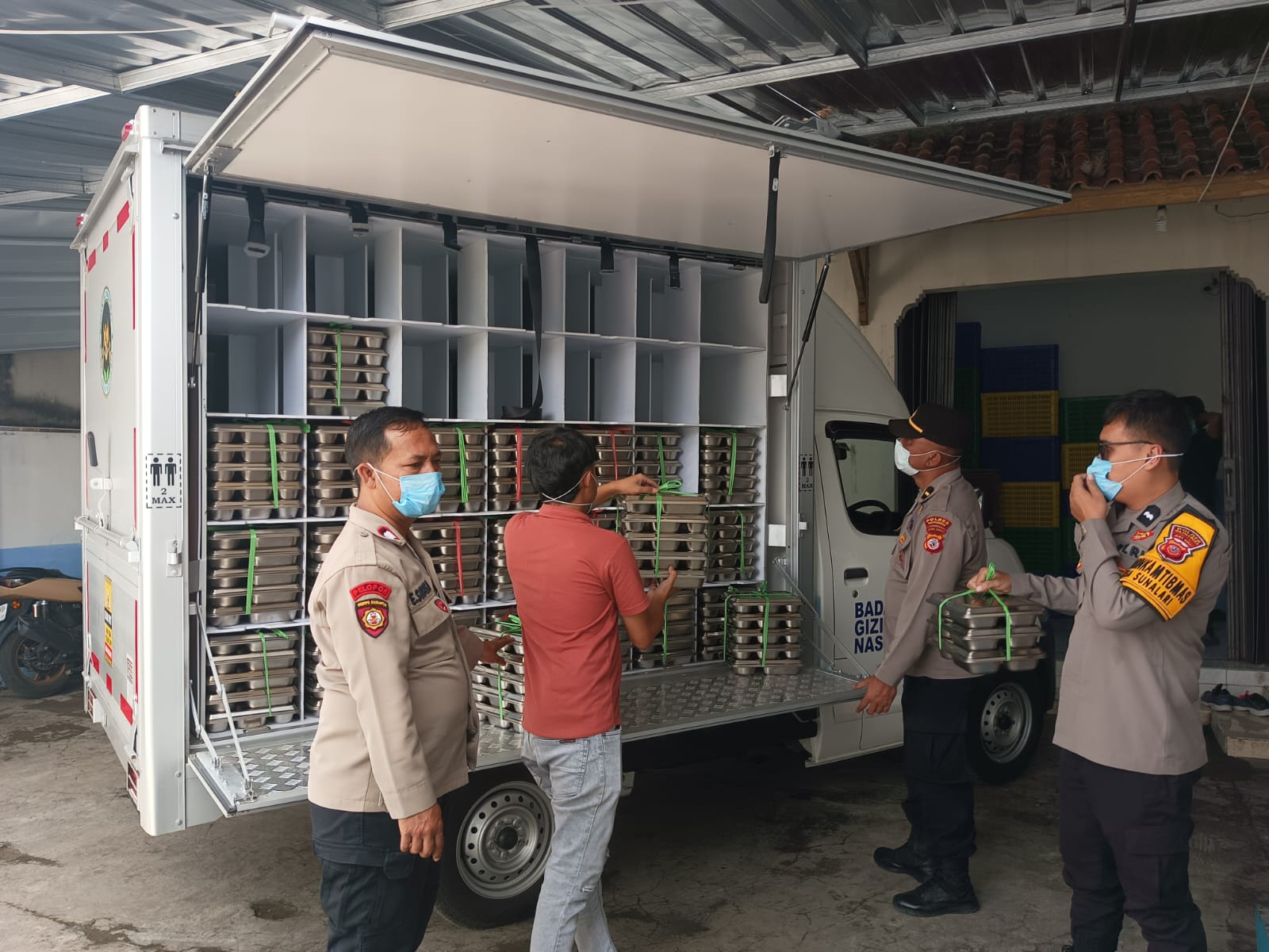 Panit Samapta II IPDA D. Yusuf bersama Ps. Panit Samapta l Aiptu Eman Subagja dan Bhabinkamtibmas Bripka Achmad Supriyono melakukan monitoring dan pemantauan MBG di SPPG Desa Cikijing, Kecamatan Cikijing, Kabupaten Majalengka, Rabu (14/01/2026).