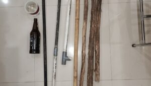 Dari lokasi kejadian, polisi turut menyita sejumlah barang bukti yang diduga digunakan untuk tawuran, di antaranya satu botol kosong bekas bir hitam, beberapa batang kayu dolken, pipa PVC, pipa besi, serta gulungan benang layangan.