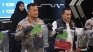 Dalam konferensi pers tersebut, turut disampaikan sejumlah barang bukti yang berhasil diamankan, di antaranya satu unit sepeda motor Honda Beat warna hitam milik pelaku, satu unit sepeda motor Honda Scoopy warna putih milik korban, pakaian milik pelaku, satu pasang sepatu milik korban, satu buah jaket jeans milik korban, satu buah celana milik korban , satu buah baju milik korban serta satu unit handphone milik pelaku. Sementara senjata tajam jenis golok, tas, dan handphone milik korban masih dalam pencarian.