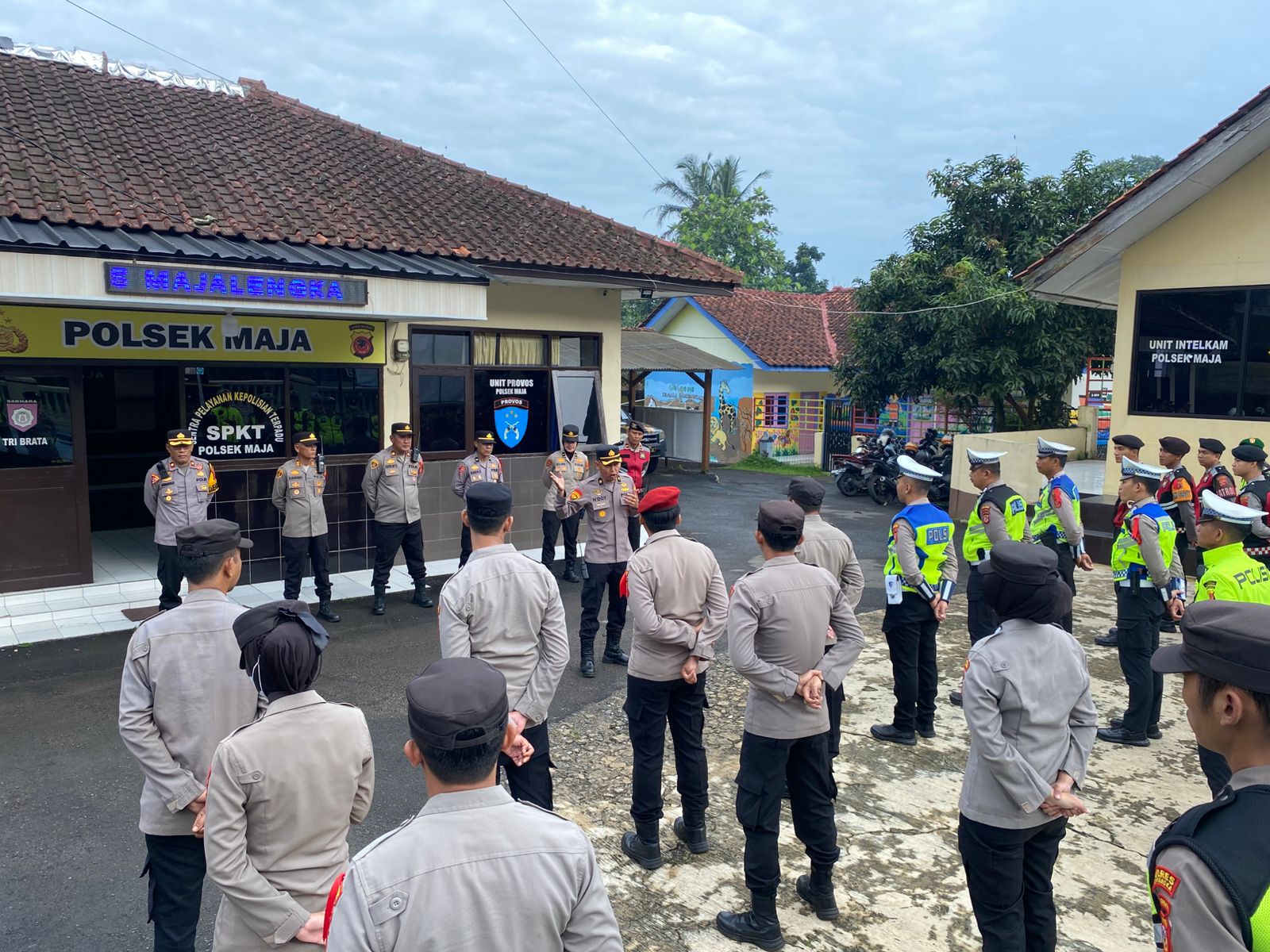Kegiatan pengamanan yang dimulai pukul 06.30 WIB ini dipimpin langsung oleh Kabag Ops Polres Majalengka Kompol Mangapul Simangunsong, S.H., M.H., didampingi Kabag Log Kompol Endoy Sahru, S.Sos., M.H., serta Kapolsek Maja AKP Aas Guntara. Kehadiran para Pejabat Utama (PJU) Polres Majalengka di lapangan ini bertujuan untuk memastikan seluruh rangkaian ibadah dan silaturahmi ribuan jemaah berjalan dengan aman, tertib, dan kondusif.