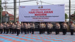 Kapolres Majalengka AKBP Willy Andrian, S.H., S.I.K., M.H. dalam sambutannya menyampaikan bahwa peringatan Hari Pahlawan menjadi momentum untuk menanamkan nilai-nilai kepahlawanan, semangat patriotisme, serta mengajak seluruh anggota Polri dan masyarakat untuk terus berkontribusi bagi bangsa dan negara.