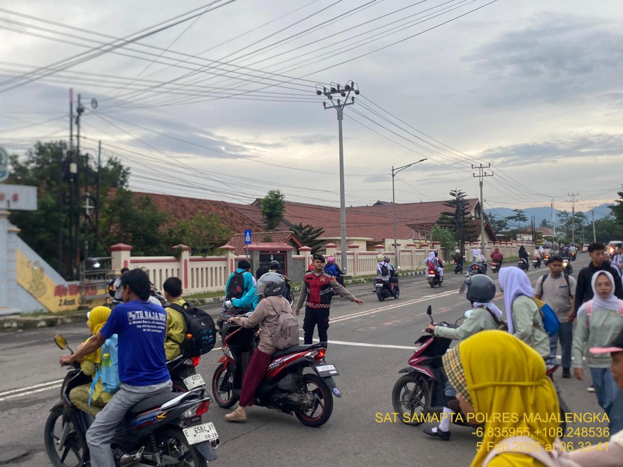 Majalengka // Zonakabar.com – Dalam rangka memantapkan pemeliharaan keamanan dan ketertiban masyarakat (Kamtibmas), Polres Majalengka melaksanakan kegiatan Pengaturan Pagi di sejumlah titik rawan kepadatan arus lalu lintas dan aktivitas masyarakat, pada hari Kamis (05/02/2026).