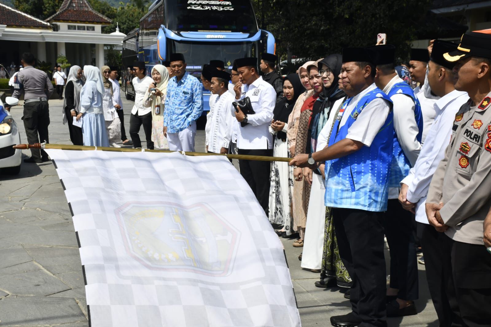 Para jemaah haji tampak antusias dan haru saat hendak berangkat, didampingi keluarga yang turut mengantar. Suasana penuh doa dan harapan mengiringi keberangkatan mereka menuju Tanah Suci.