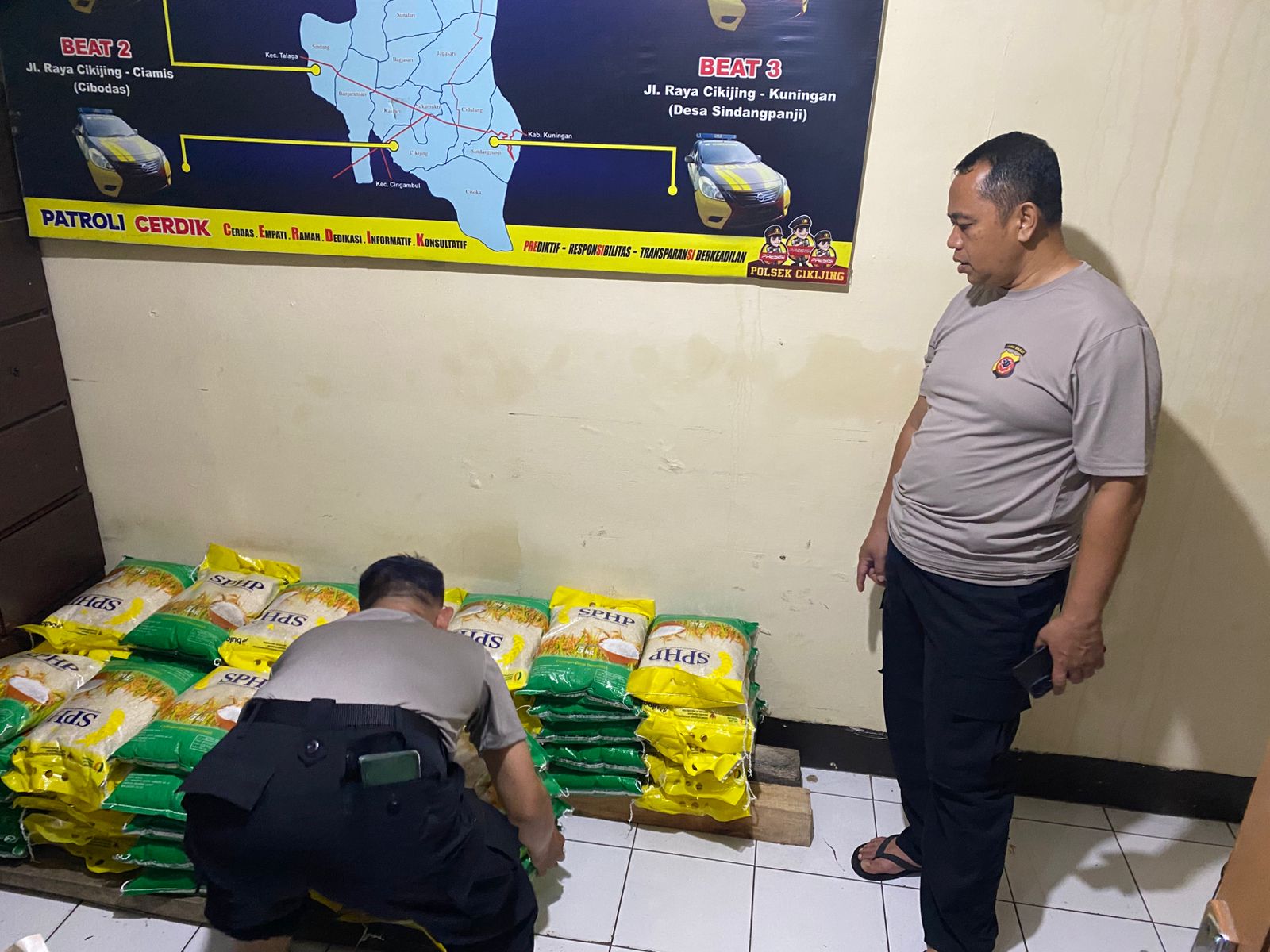 Kapolsek Cikijing AKP Asep Rusmawan, S.H. menjelaskan pihaknya melakukan penyimpanan sementara di ruang tertutup sebelum beras dibagikan. Ia menegaskan, proses penjualan akan dilakukan dengan sistem antrean agar tertib dan menghindari penumpukan warga.