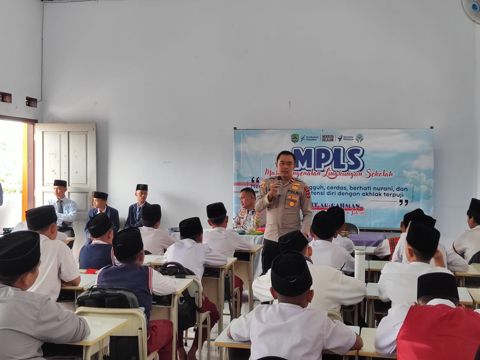 Majalengka, Zonakabar.com – Dalam rangka membentuk karakter pelajar yang disiplin dan menjunjung tinggi nilai-nilai moral sejak dini, Polsek Kasokandel Polres Majalengka Polda Jabar melaksanakan penyuluhan kepada peserta didik baru dalam kegiatan Masa Pengenalan Lingkungan Sekolah (MPLS) di SMP IT Arrahman, Desa Kasokandel, Kecamatan Kasokandel, pada Senin (14/7/2025).