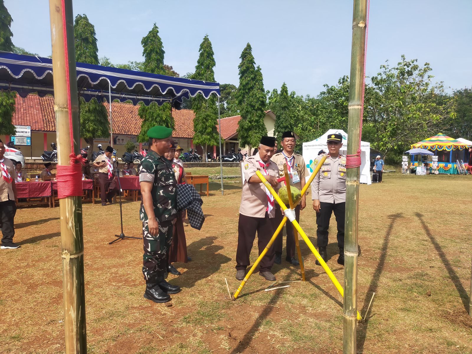 Hadir dalam kegiatan tersebut Kapolsek Kasokandel Ipda A. Rusdianto, S.H. Acara ini juga dihadiri oleh Camat Kasokandel Dr. Yusmanto, S.Pd., M.T., Danramil Kasokandel Kapten CBA Sidik, Kanit Binmas Polsek Kasokandel Aipda Rukman Jana, Babinsa Serda Saeful, Ketua Kwartir Ranting Pramuka Kasokandel, serta Ketua Panitia Jambore Kecamatan Kasokandel.