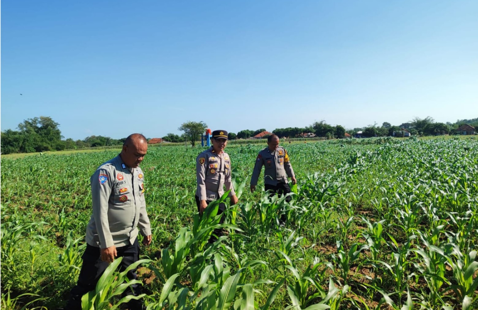 Brigadir Endi R selaku polisi penggerak ketahanan pangan, melakukan pengecekan langsung terhadap lahan seluas 140 m² yang ditanami komoditas jagung oleh Bapak Maman sebagai pengelola lahan. Adapun lahan yang digunakan merupakan lahan bengkok milik desa.