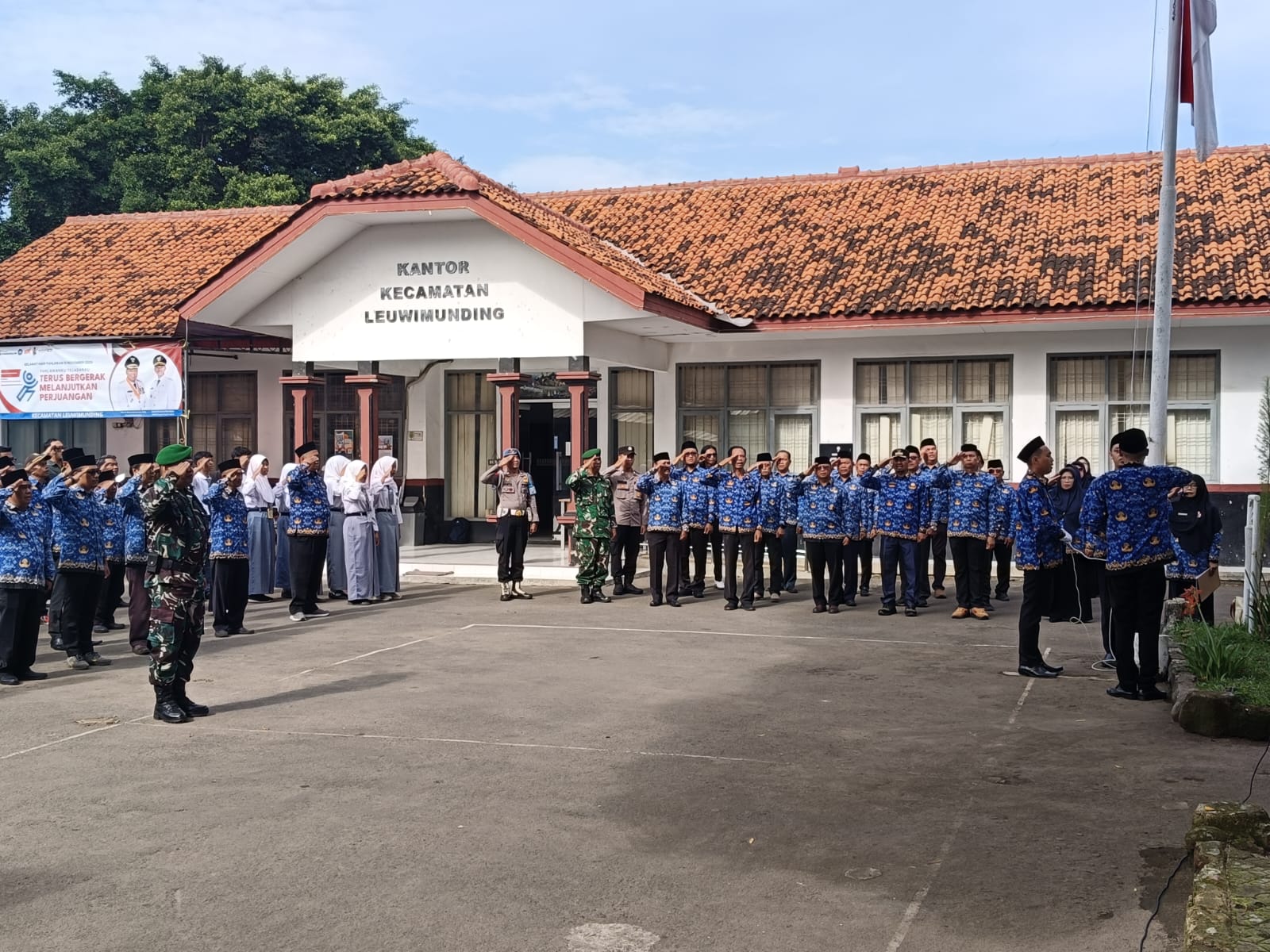 Kegiatan upacara tersebut dihadiri oleh Forkopimcam Leuwimunding, para Kepala Desa, perwakilan instansi pemerintah, tokoh masyarakat, tokoh agama, pelajar, serta berbagai elemen masyarakat. Bertindak sebagai Inspektur Upacara yaitu Camat Leuwimunding, sementara personel gabungan dari Polsek Leuwimunding turut serta dalam barisan peserta upacara serta melakukan pengamanan jalannya kegiatan.