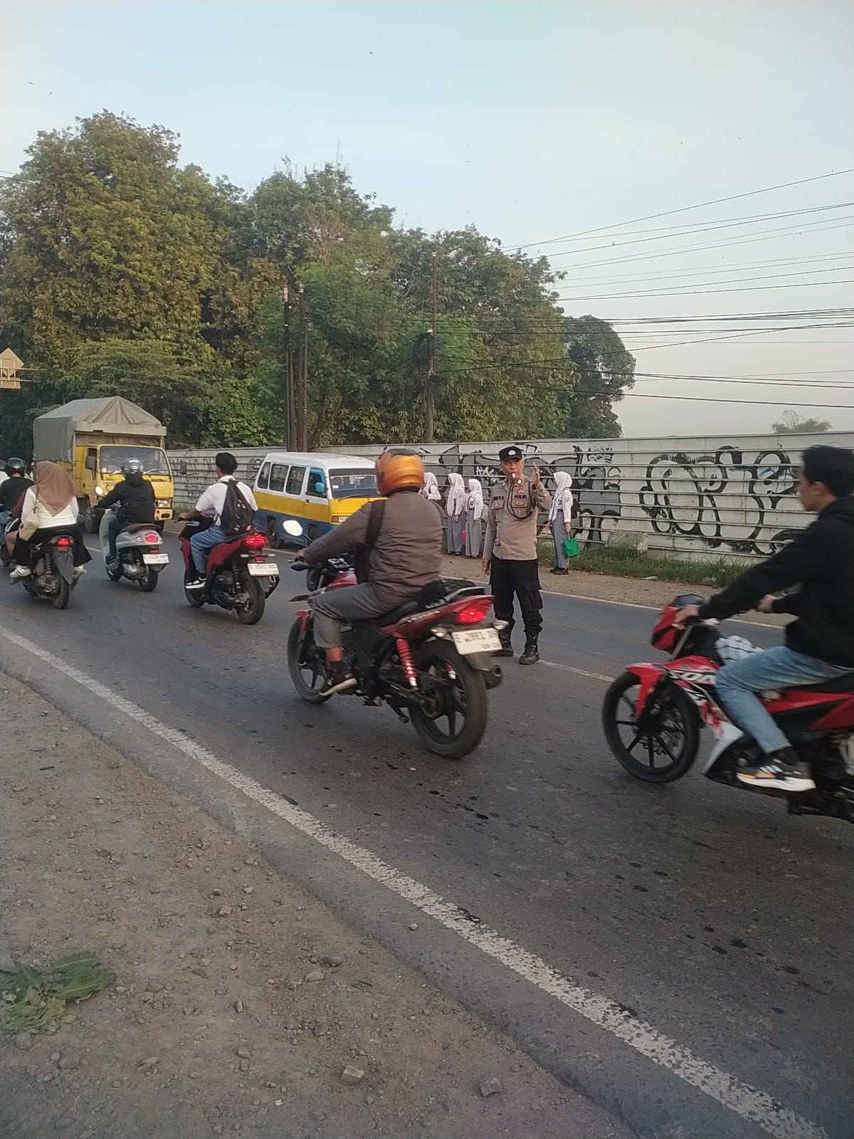 Kegiatan ini difokuskan pada pengaturan arus kendaraan serta membantu penyeberangan para pelajar yang hendak memasuki area sekolah, guna mengantisipasi kepadatan lalu lintas pada jam sibuk pagi hari.