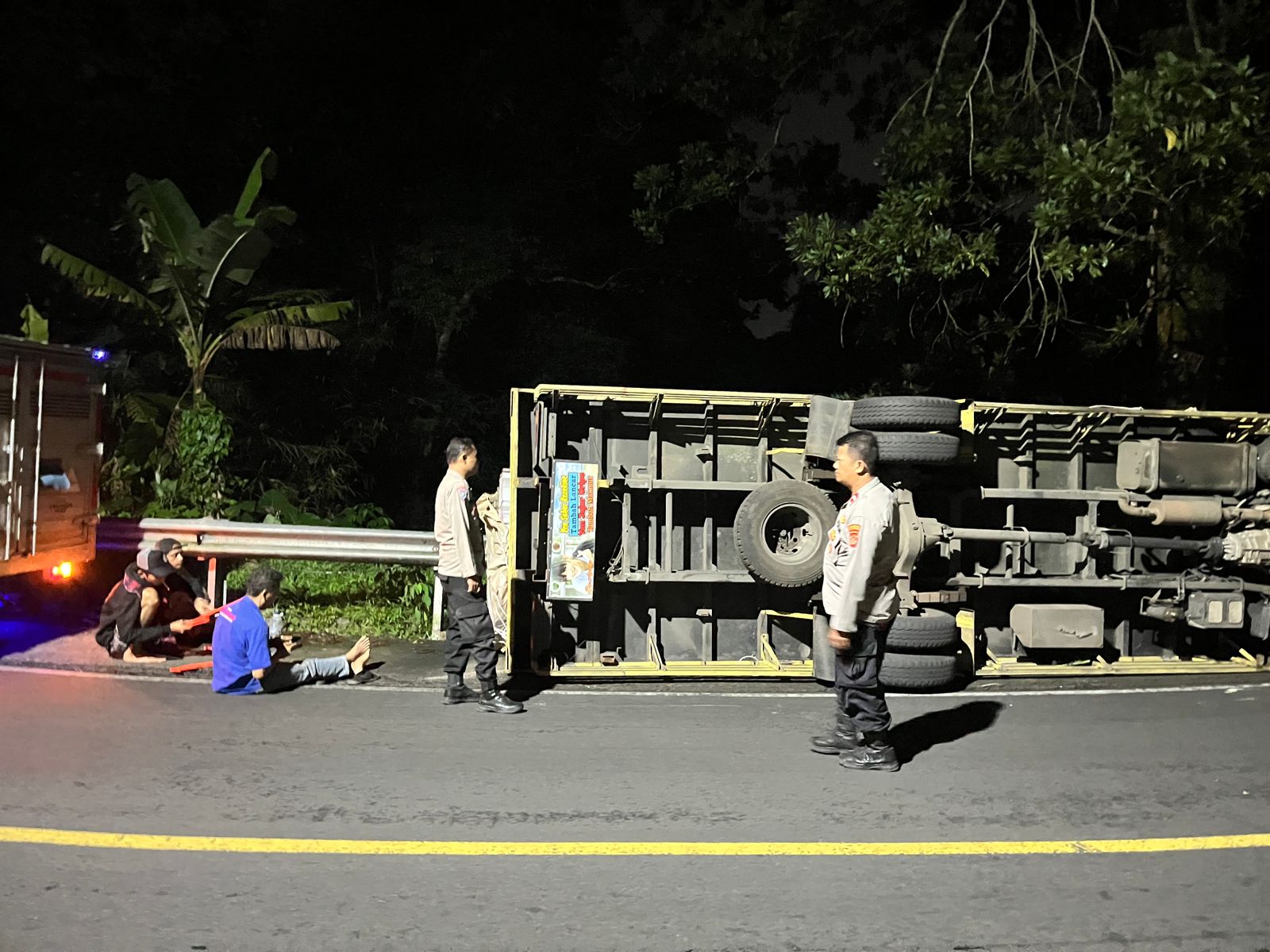 Berdasarkan hasil keterangan saksi dan pengemudi, diketahui bahwa kecelakaan diakibatkan sopir yang mengantuk. Kondisi tersebut menyebabkan pengemudi kehilangan kendali hingga kendaraan terbalik.