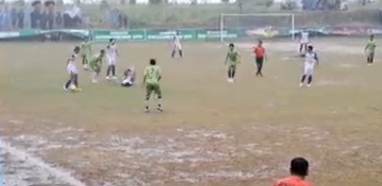 Dibawah guyuran hujan deras serta lapangan yang becek tak membuat kendor semangat kedua tim untuk bermain menyerang demi kemenangan menuju tiket grand final.