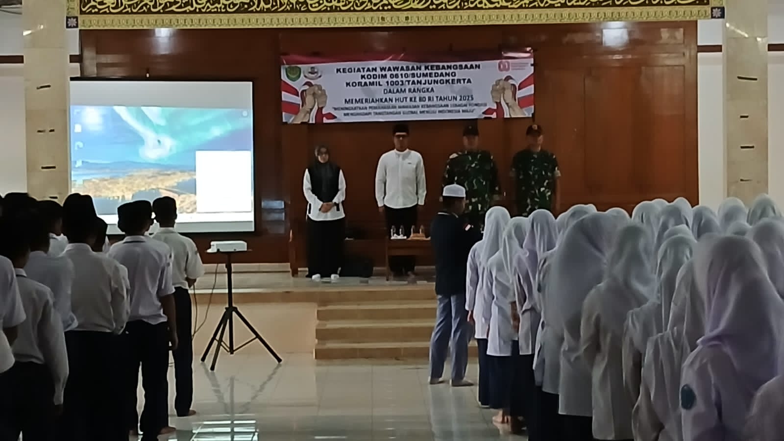 Acara ini dipimpin langsung oleh Danramil 1003/Tanjungkerta, Kapten Inf Lesly Darmawan, dengan didampingi Pimpinan Ponpes KH Budi Arista Hidayat, S.Pd.I., M.Si., Kepala MTS Hj. Teti Listiana, S.Pd.I., M.M., Kepala MA Deny Ali Mujahid Husen, S.Kom., M.T., para guru, dan pengasuh pesantren. Sebanyak 252 santri dan siswa turut menjadi peserta.