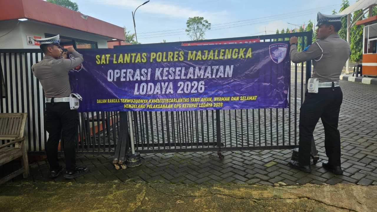 Majalengka // Zonakabar.com – Satuan Lalu Lintas (Sat Lantas) Polres Majalengka melaksanakan kegiatan pemasangan spanduk Operasi Keselamatan Lodaya 2026 di sejumlah titik strategis wilayah Kabupaten Majalengka, Kamis (12/2/2026).