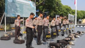 Dalam kegiatan tersebut, dilakukan pemeriksaan terhadap kelengkapan seragam dinas, alat pelindung diri, serta peralatan penunjang lainnya yang digunakan dalam tugas pengamanan. Selain itu, Wakapolres juga menekankan pentingnya kedisiplinan, profesionalisme, dan humanis dalam menjalankan tugas, khususnya dalam menghadapi potensi kerawanan saat peringatan May Day.