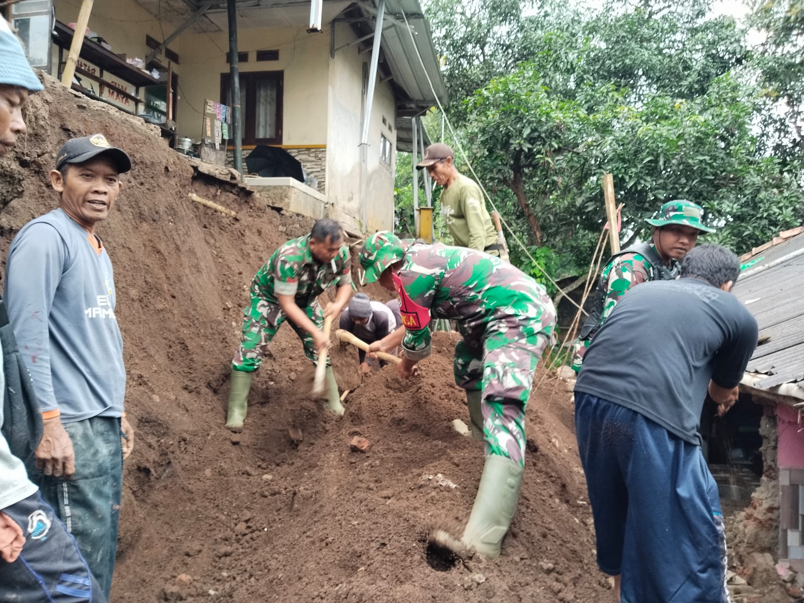Berdasarkan data di lapangan, material tanah dan Batu Menimpa ke rumah milik Bapak Komarudin, Serka Yunus bersama warga bahu-membahu membersihkan sisa longsoran menggunakan alat seadanya seperti cangkul dan sekop, Kerugian ditaksir Sekitar Rp 40 juta.